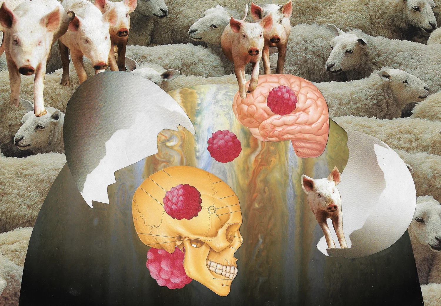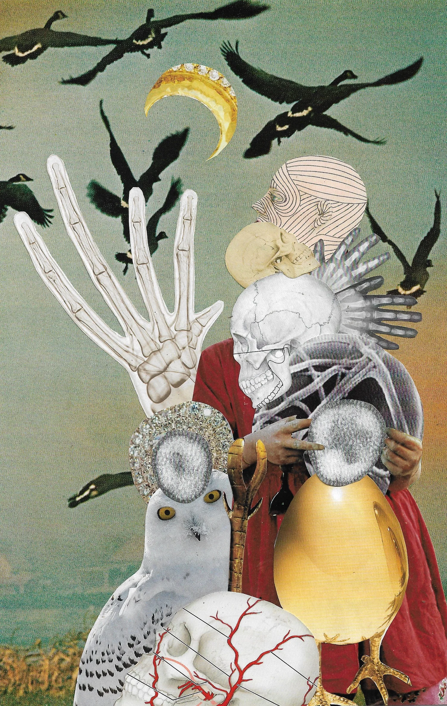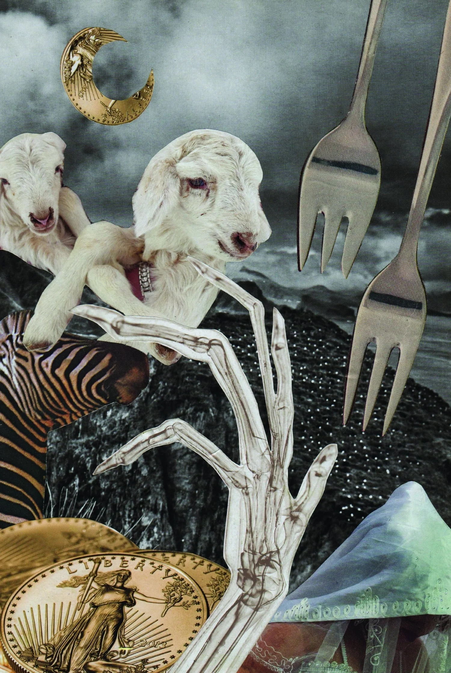 Who Came First, the Flock or the Swine? / 2018 / Melody Jean Moulton / Collage / 10.75 x 8 inches / Available
